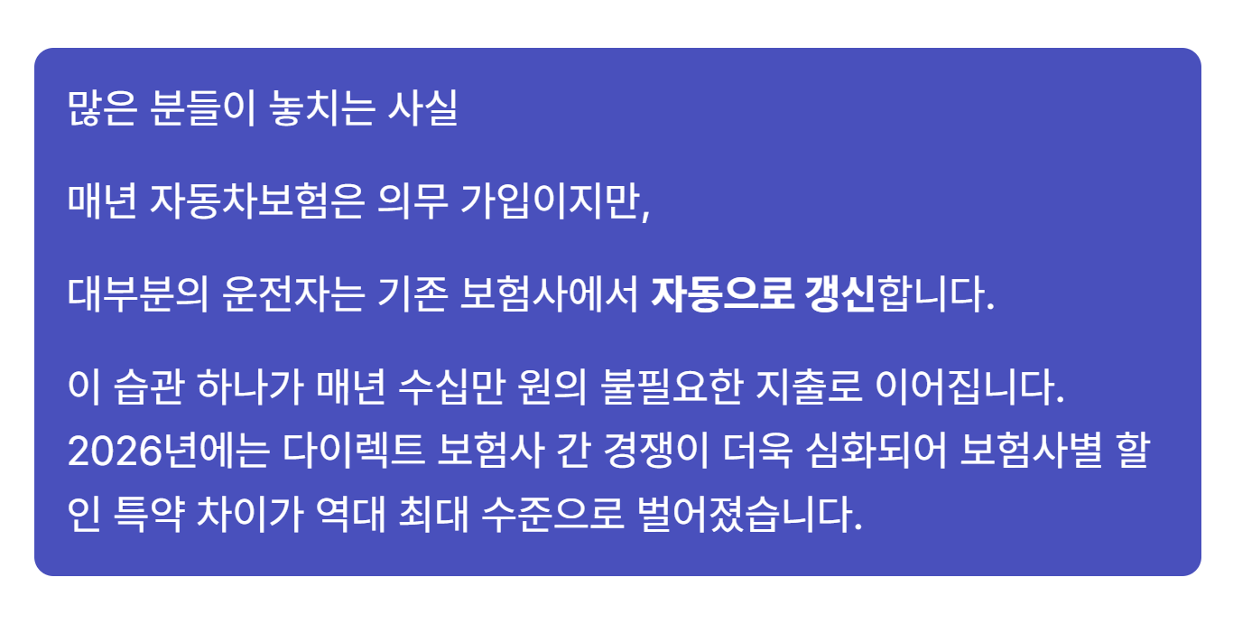 특히 2026년에는 다이렉트 자동차보험 경쟁이 심화되면서 보험사별 할인 특약 차이가 더욱 커졌습니다.
