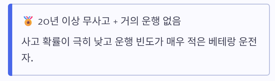 ✔ 운전 경력 20년 이상 무사고 + 운행 거의 없음