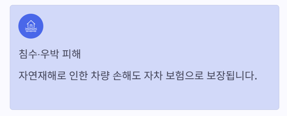 자차 보험은 내 과실 사고, 단독 사고, 주차 중 사고, 자연재해 피해까지 보장합니다.
