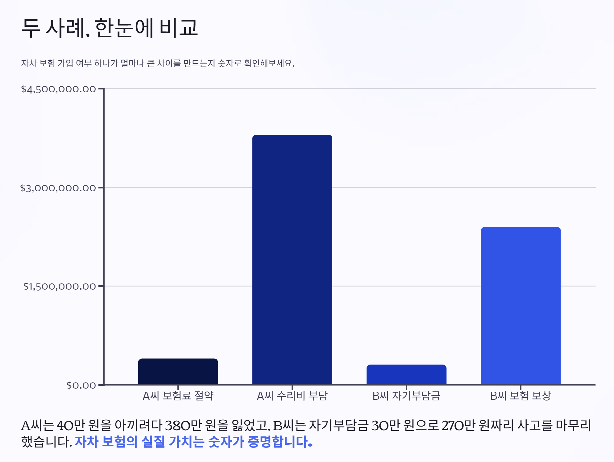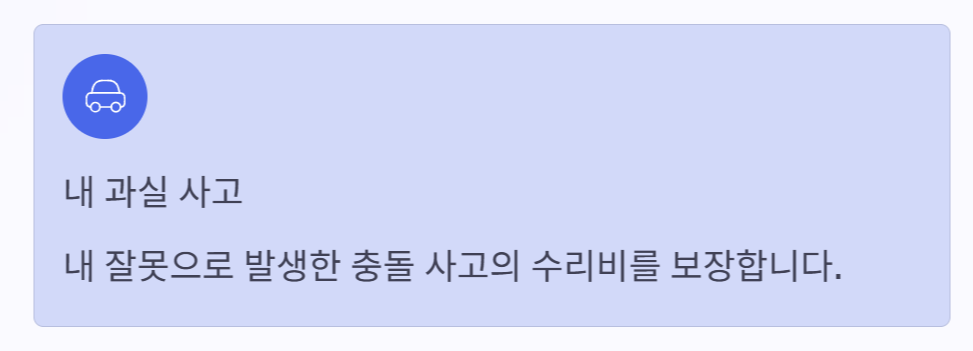즉, 내 잘못으로 사고가 나도 보상받는 유일한 담보가 자차 보험입니다.