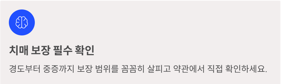 특히 치매 보장과 장기요양 보장은 반드시 확인해야 합니다.