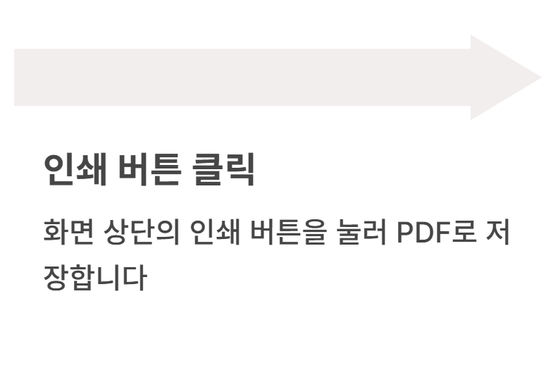 화면 상단의 인쇄 버튼을 눌러 위 이미지를 참고하시어 PDF로 저장하면 발급이 완료됩니다.