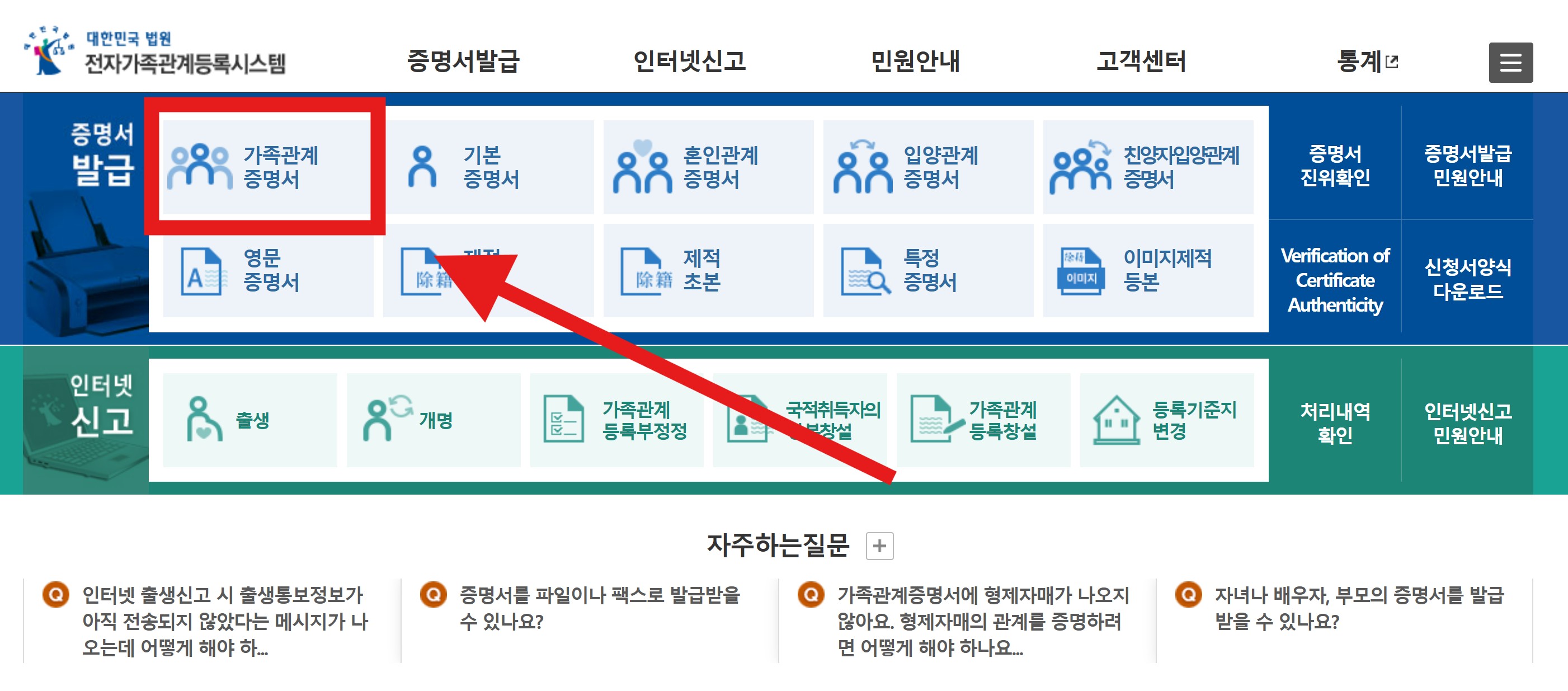 가족관계증명서 인터넷발급에서는