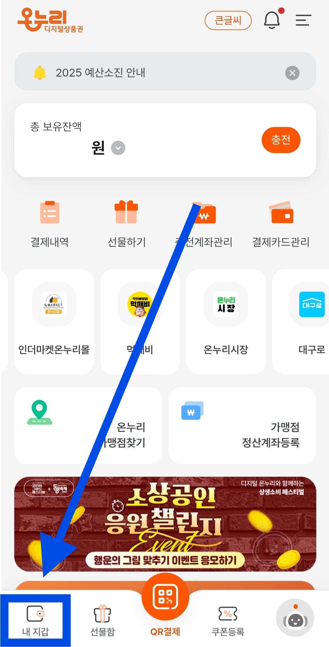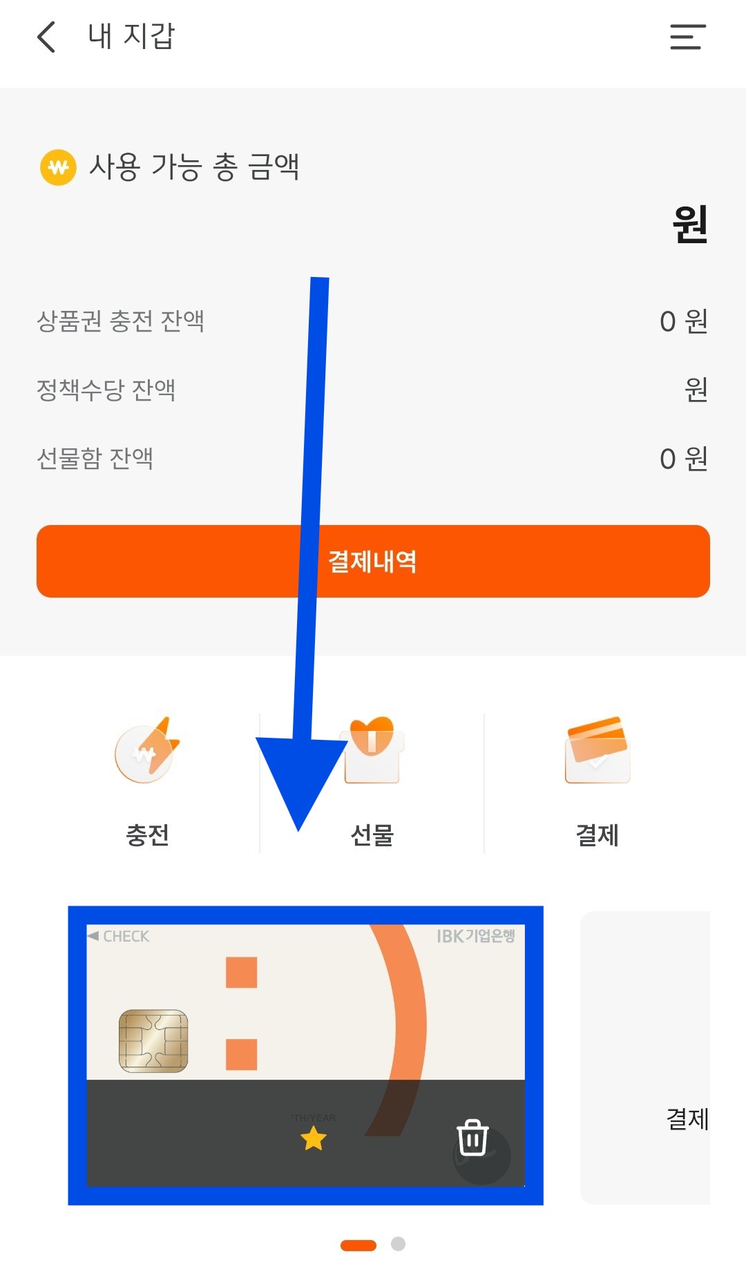 - 내 지갑 → 결제 메뉴 선택