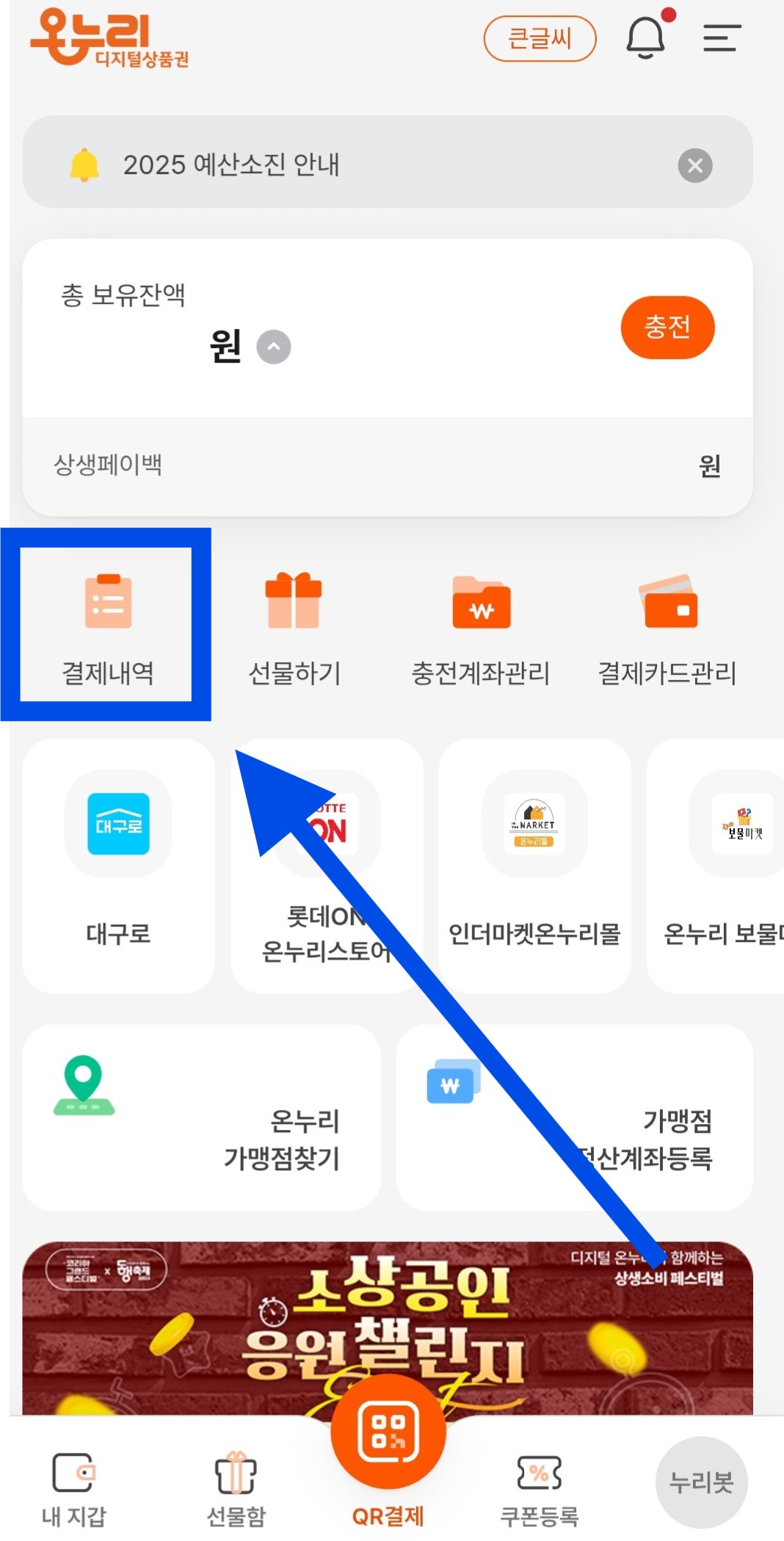 ✔ 4. 상생페이백 디지털온누리상품권 사용처 확인하기