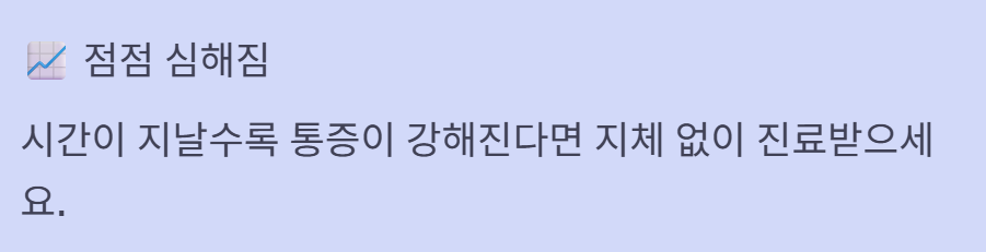 특히 외상 이후 통증이 생겼다면 반드시 병원 검사가 필요합니다.
