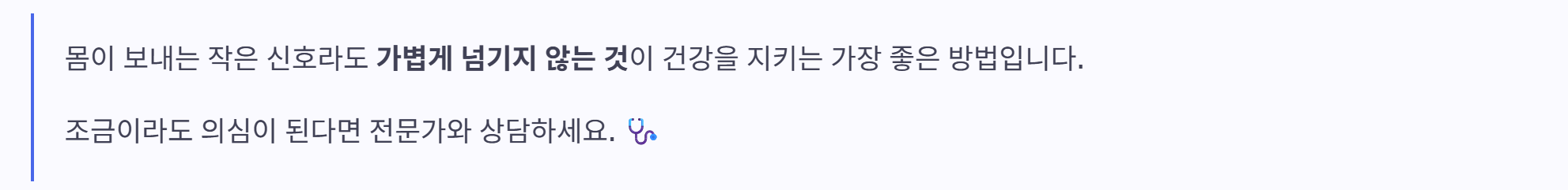몸이 보내는 작은 신호라도 가볍게 넘기지 않는 것이 건강을 지키는 가장 좋은 방법입니다.