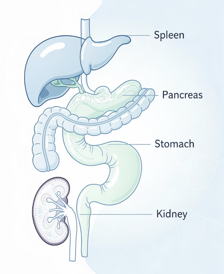 우리 몸의 왼쪽 갈비뼈 아래쪽에는 여러 중요한 장기가 위치하고 있습니다.