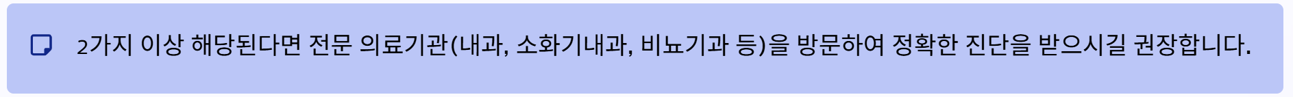 여러 항목이 해당된다면 병원 검사를 받아보는 것이 좋습니다.