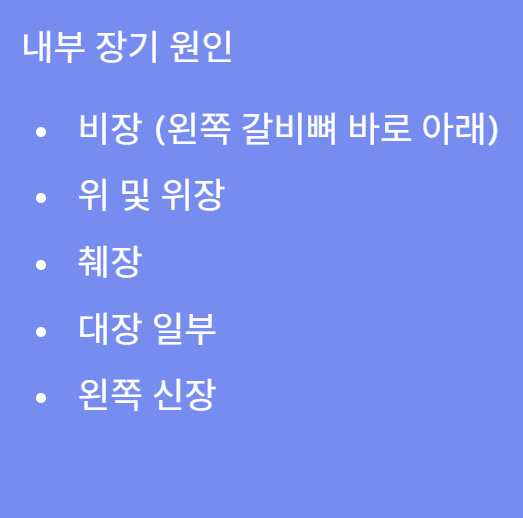 이 장기 중 하나라도 문제가 생기면 왼쪽 갈비뼈 아래 통증이 발생할 수 있습니다.