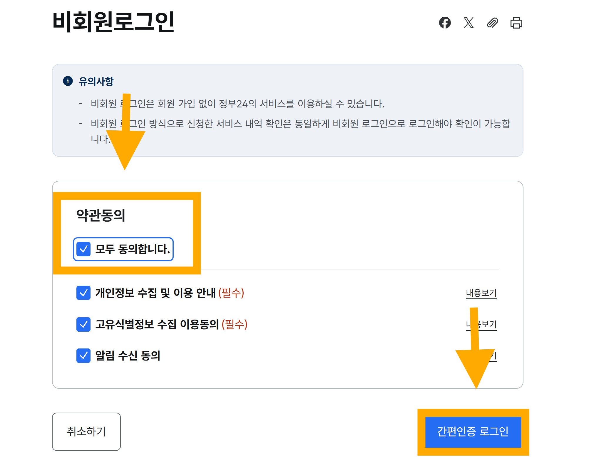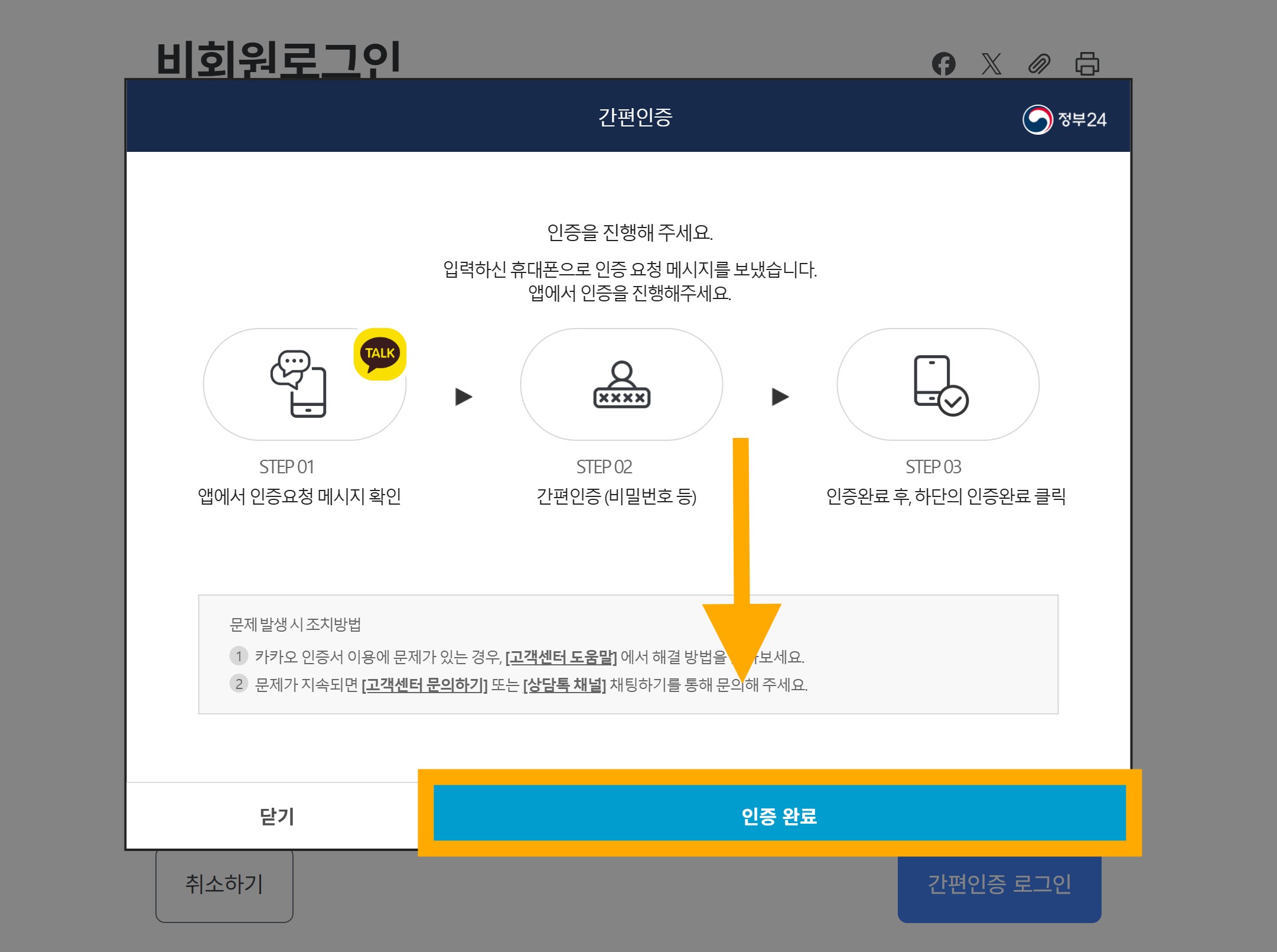 위 예시는 비회원 간편인증 카카오톡 으로 진행하였으니,