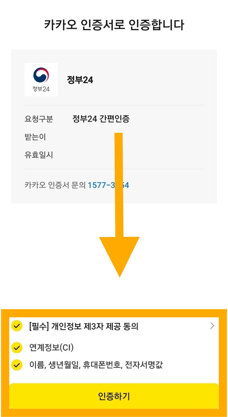 카카오톡 인증을 하시면 카카오톡으로 문자가 날아오니 인증하기 버튼을 누른 후 진행해주시면 되겠습니다!